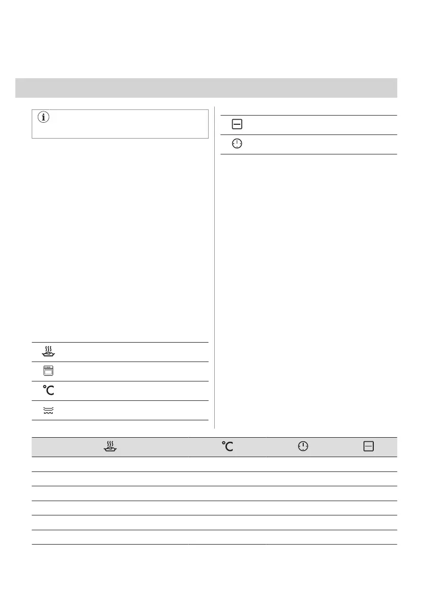 • information about the heating functions,