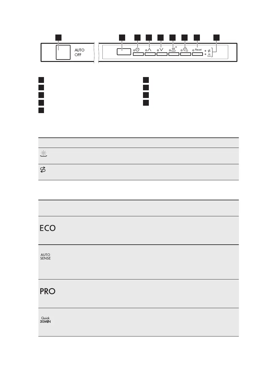 Voyant du réservoir de liquide de rinçage. Ce voyant est toujours éteint