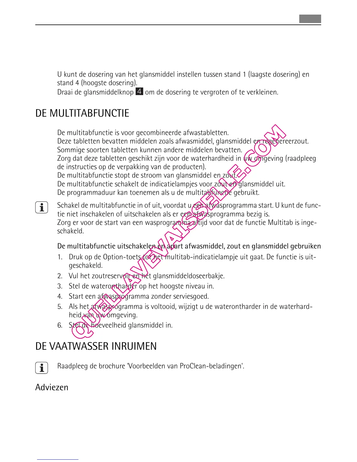 De multitabfunctie uitschakelen en apart afwasmiddel, zout en glansmiddel gebruiken