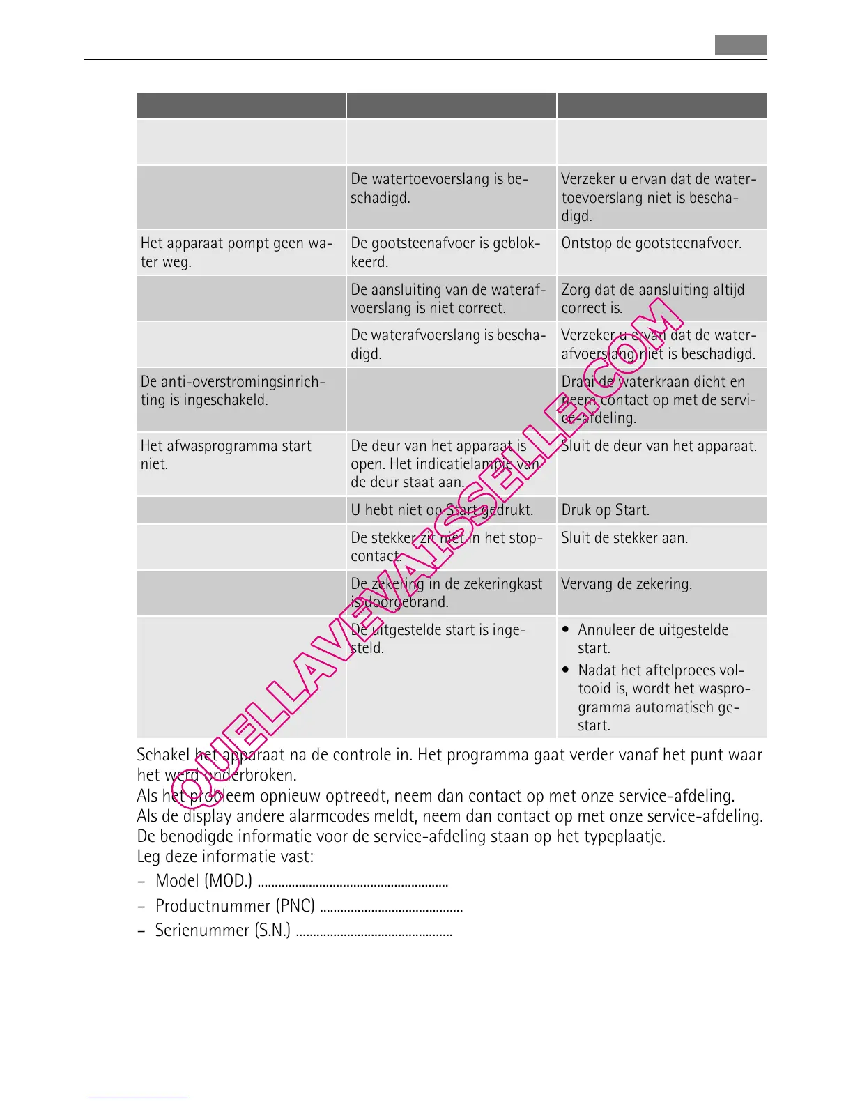 Als het probleem opnieuw optreedt, neem dan contact op met onze service-afdeling.