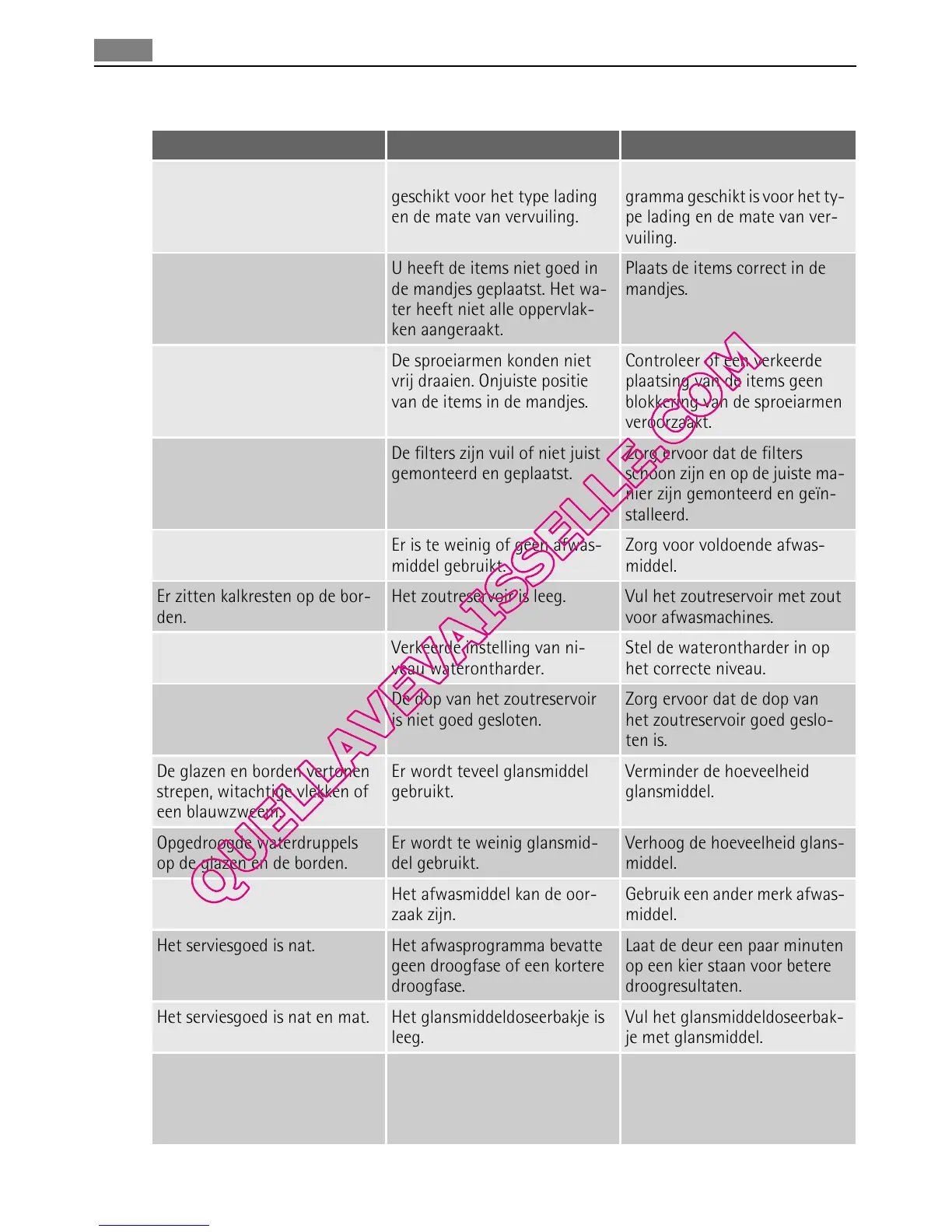 Het serviesgoed is nat en mat. Het glansmiddeldoseerbakje is
