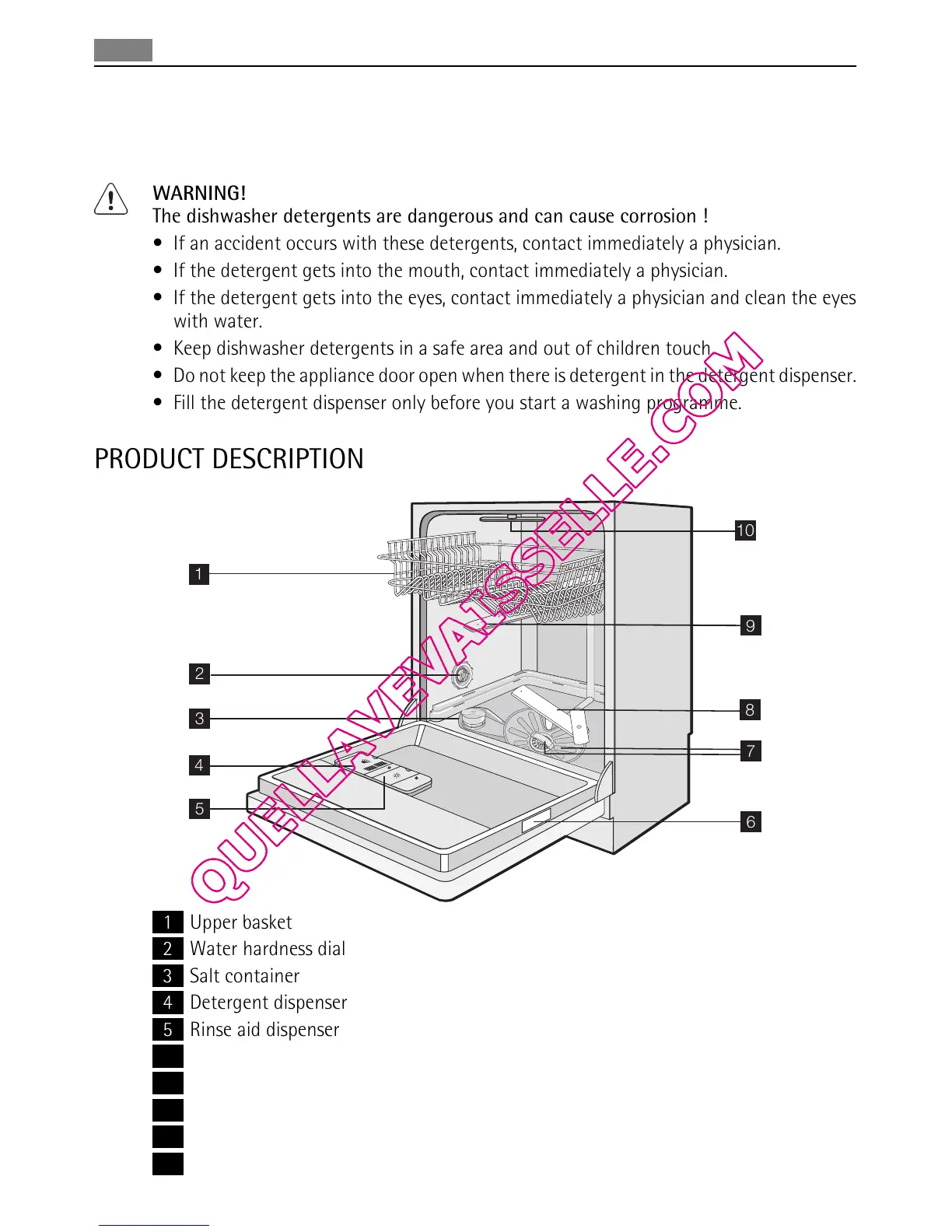 • Keep dishwasher detergents in a safe area and out of children touch.
