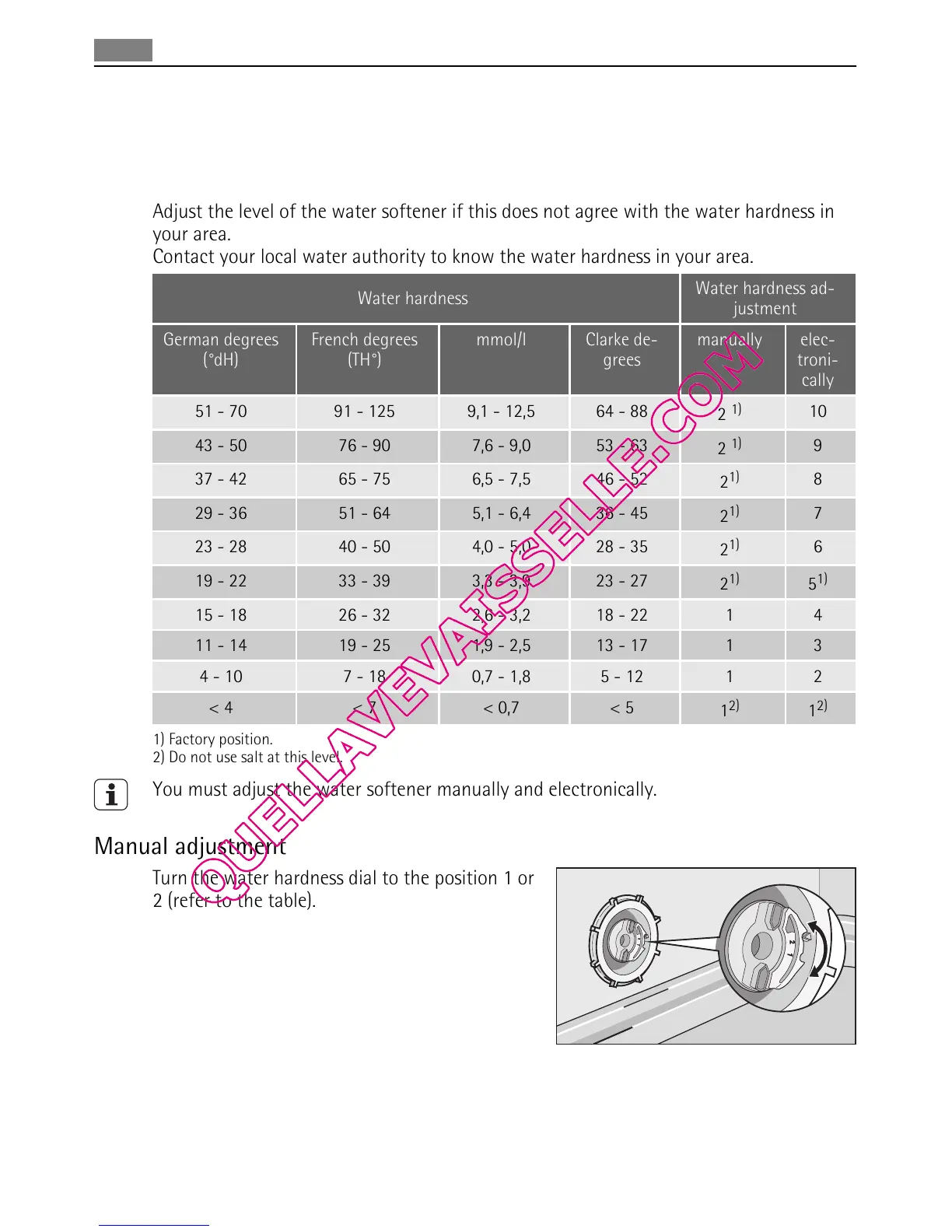 Turn the water hardness dial to the position 1 or