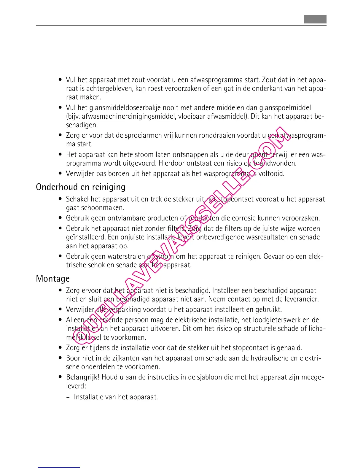 • Gebruik alleen gespecificeerde producten voor afwasmachines (afwasmiddel, zout,