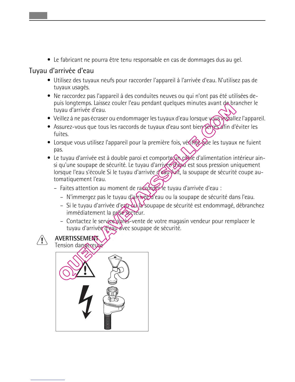 • Le tuyau d'arrivée est à double paroi et comporte un câble d'alimentation intérieur ain-