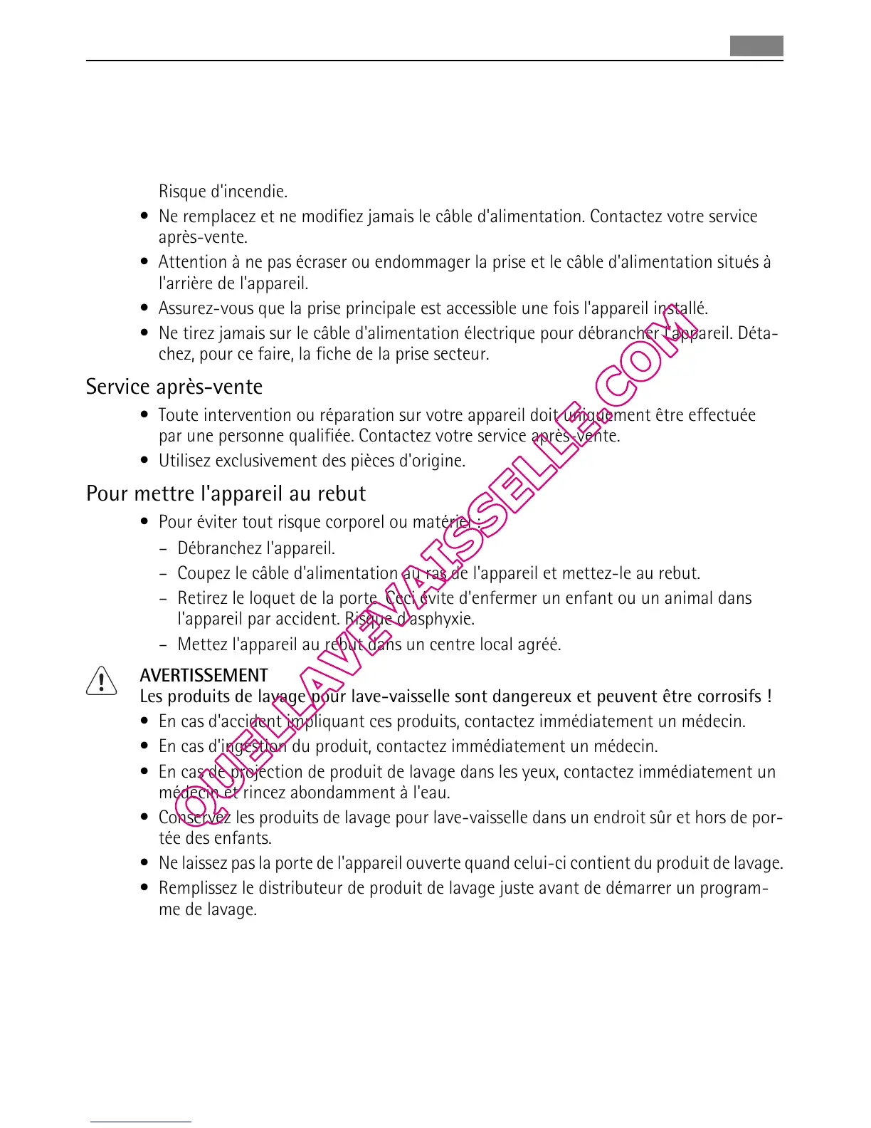 • Conservez les produits de lavage pour lave-vaisselle dans un endroit sûr et hors de por-