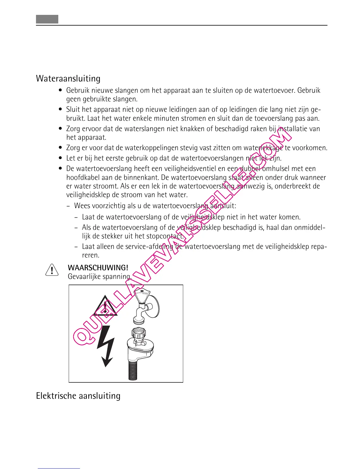 – Wees voorzichtig als u de watertoevoerslang aansluit: