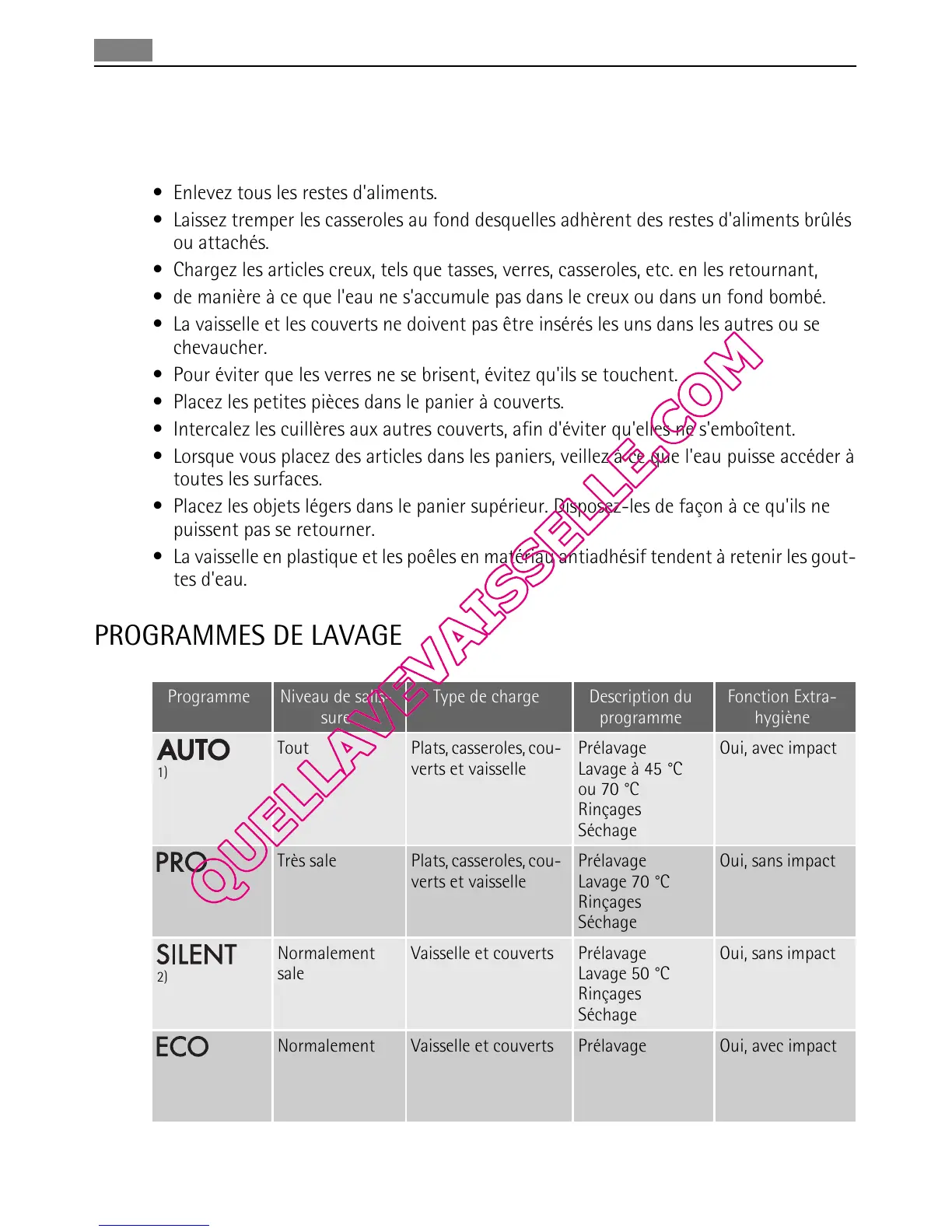 • La vaisselle et les couverts ne doivent pas être insérés les uns dans les autres ou se