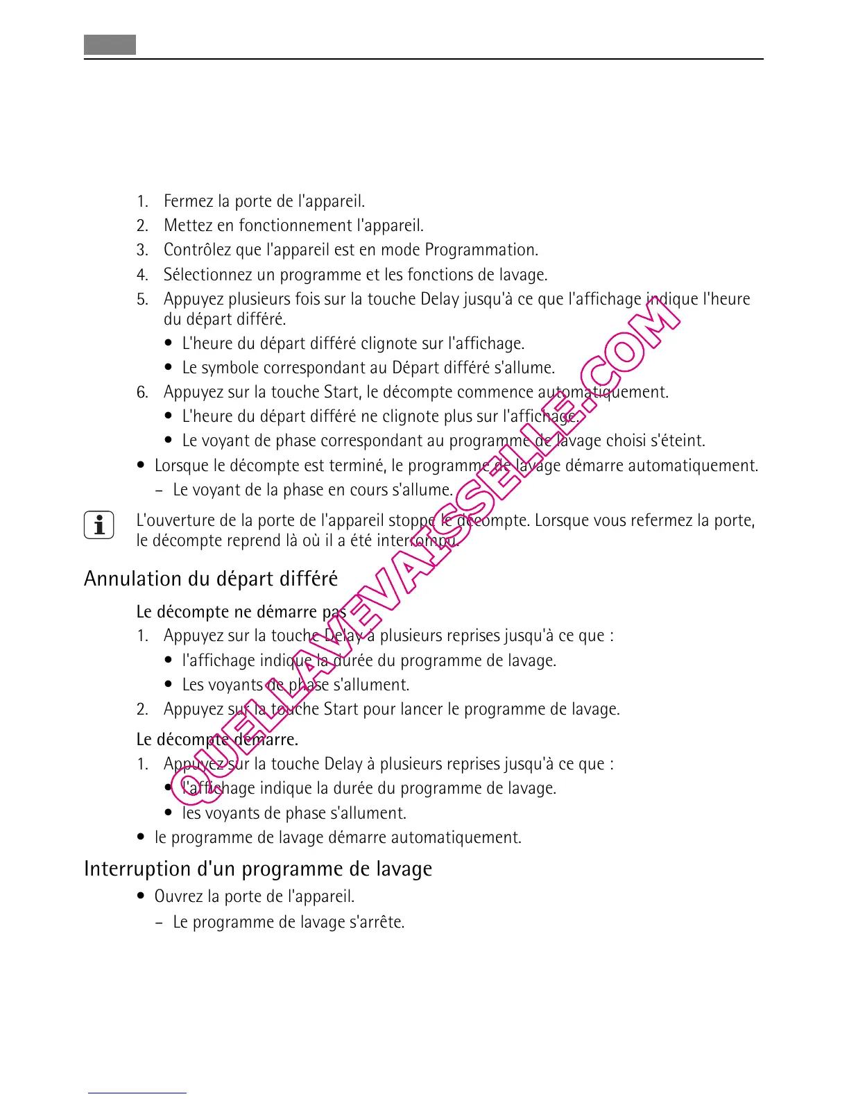 Si le programme de lavage ou un départ différé n'a pas encore démarré, vous pouvez