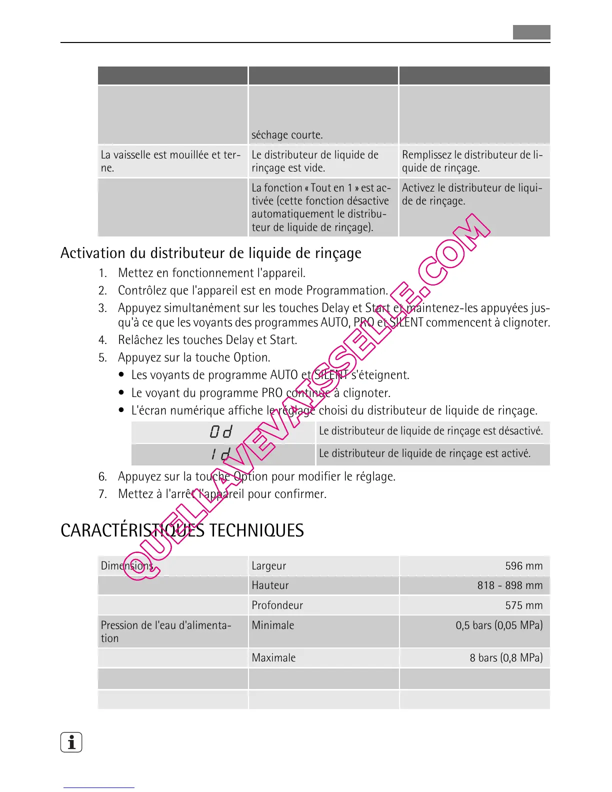 • L'écran numérique affiche le réglage choisi du distributeur de liquide de rinçage.