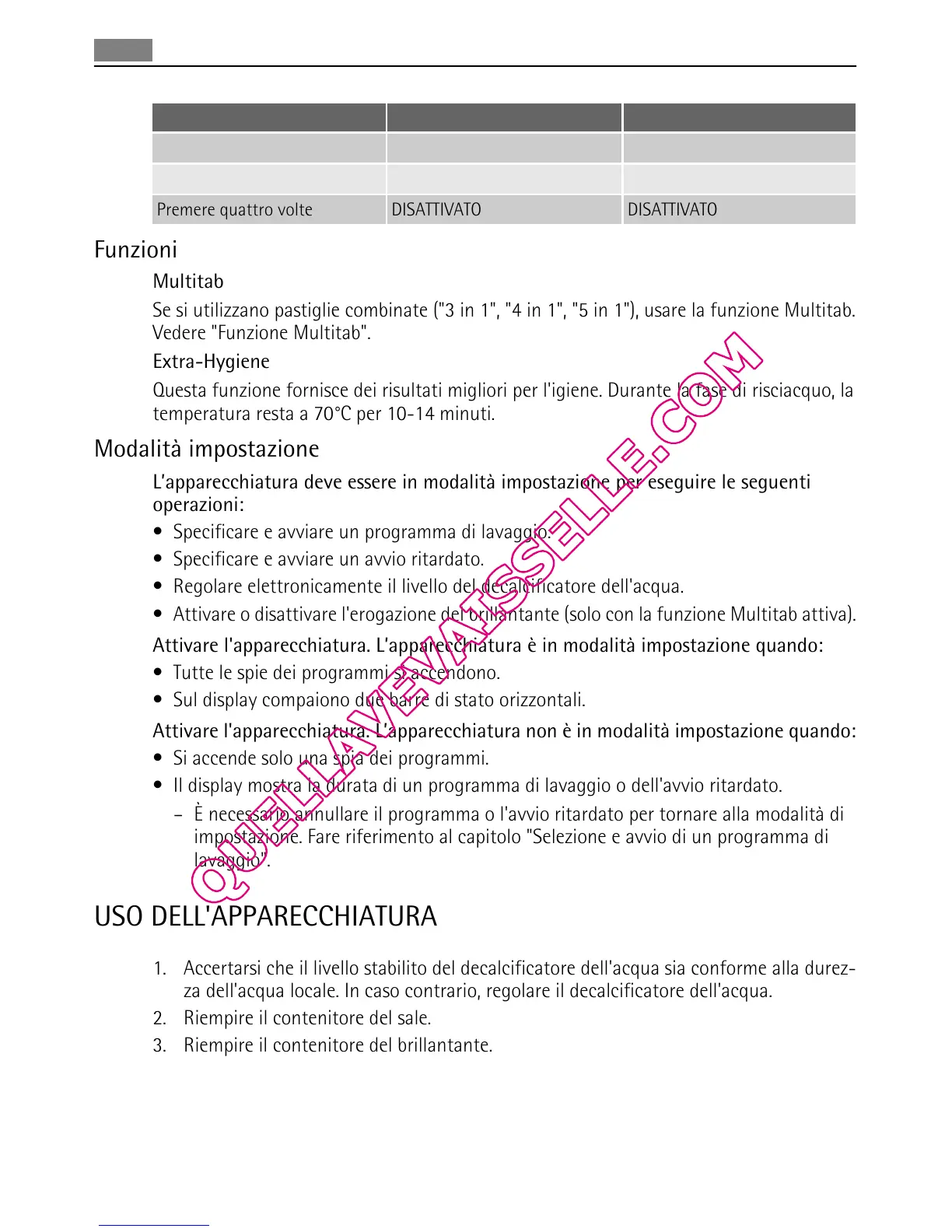Se si utilizzano pastiglie combinate ("3 in 1", "4 in 1", "5 in 1"), usare la funzione Multitab.