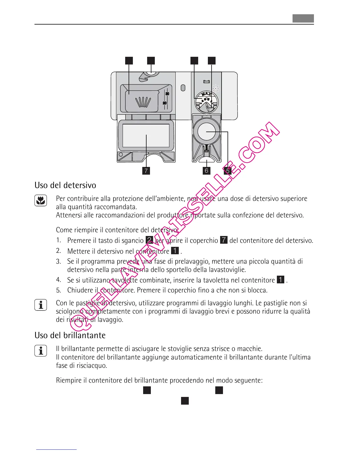 Riempire il contenitore del brillantante procedendo nel modo seguente:
