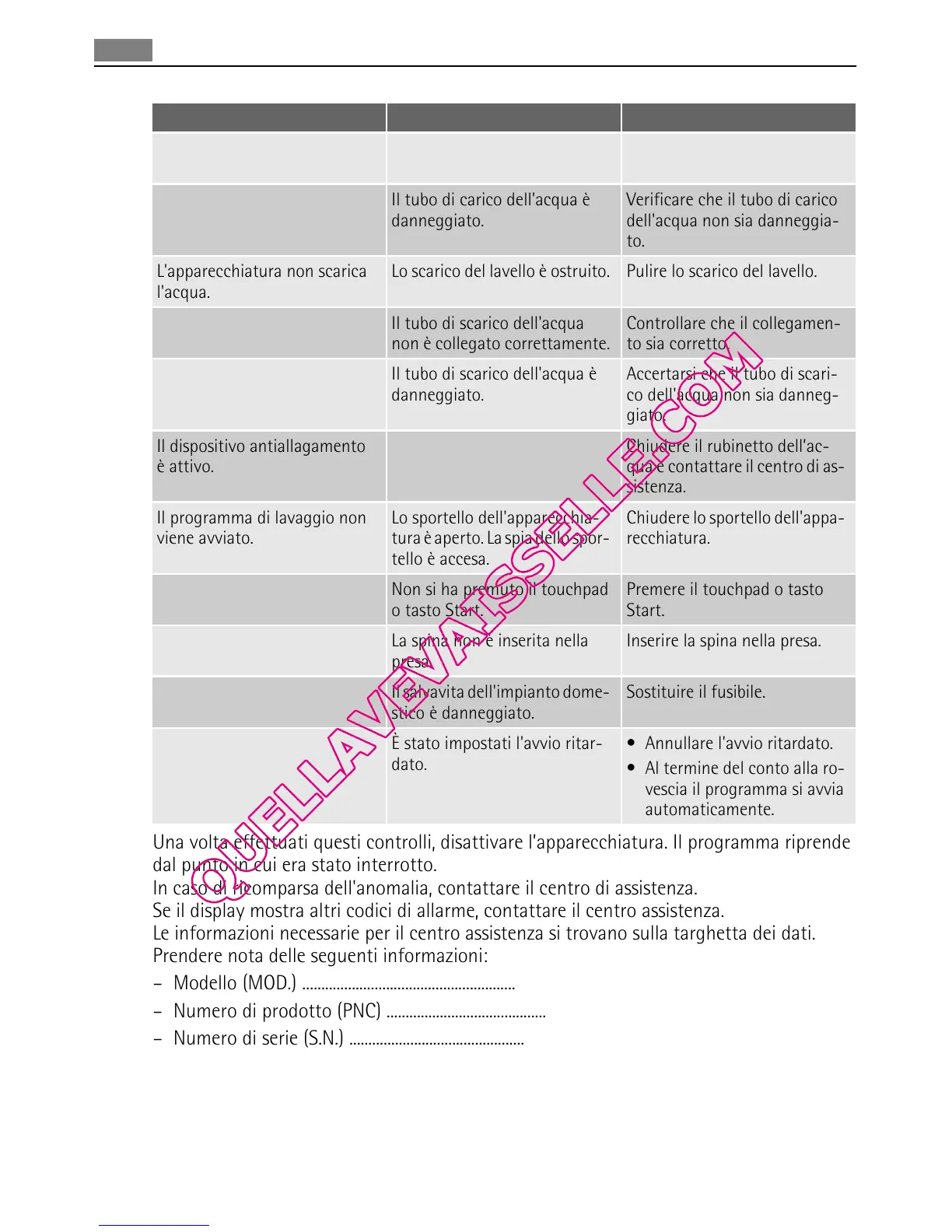 Se il display mostra altri codici di allarme, contattare il centro assistenza.