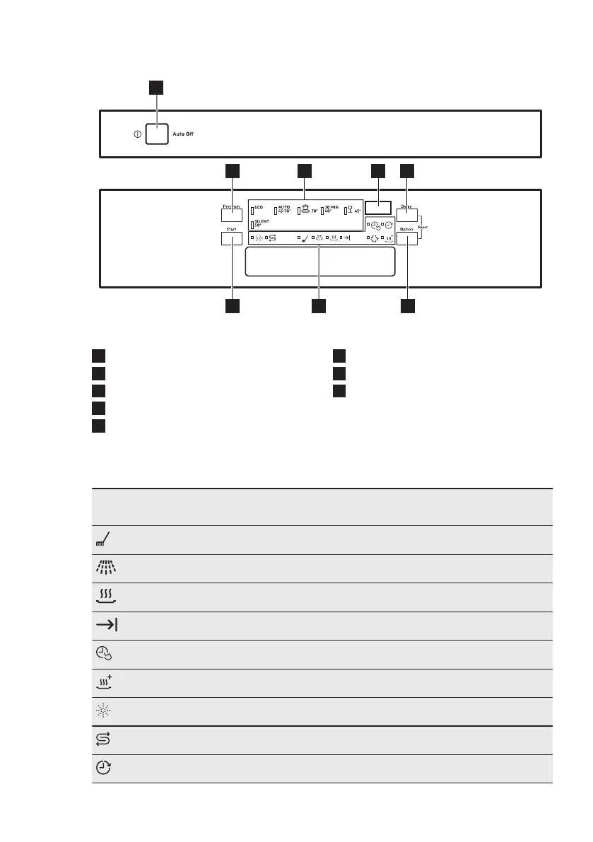 Kontrolllampe Klarspülmittel. Sie erlischt während des Programmbetriebs.