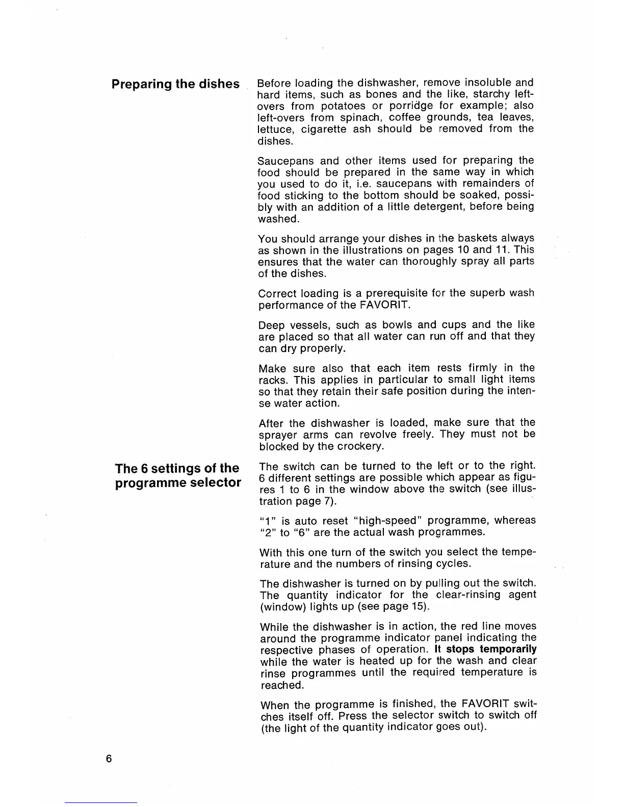 AEG FAVORIT - Dishwasher Loading and Programs; Preparing and Loading Dishes; Programme Selector Guide
