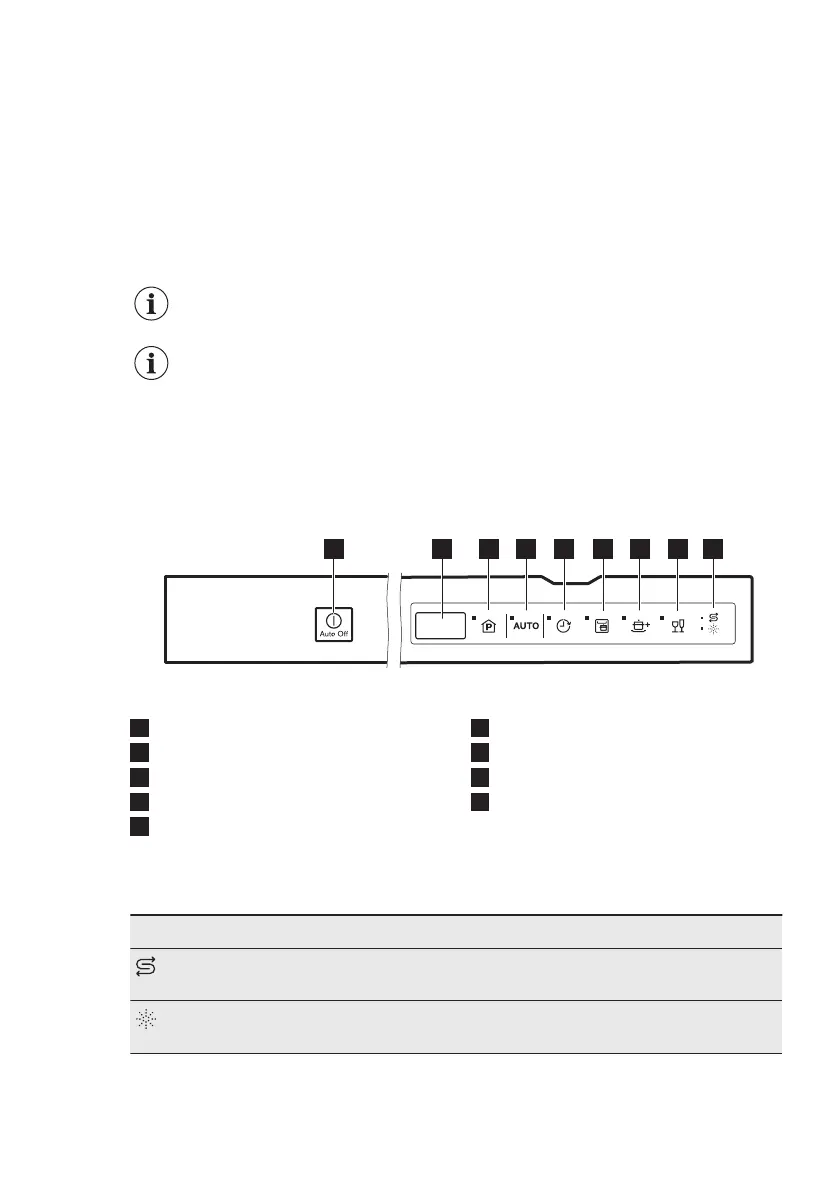 Rinse aid indicator. It is on when the rinse aid dispenser needs refilling. It