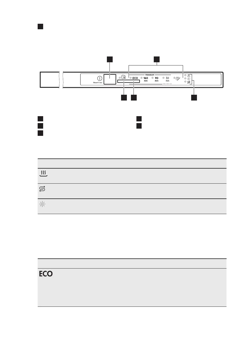 Drying phase indicator. It is on when you select a programme with the dry‐