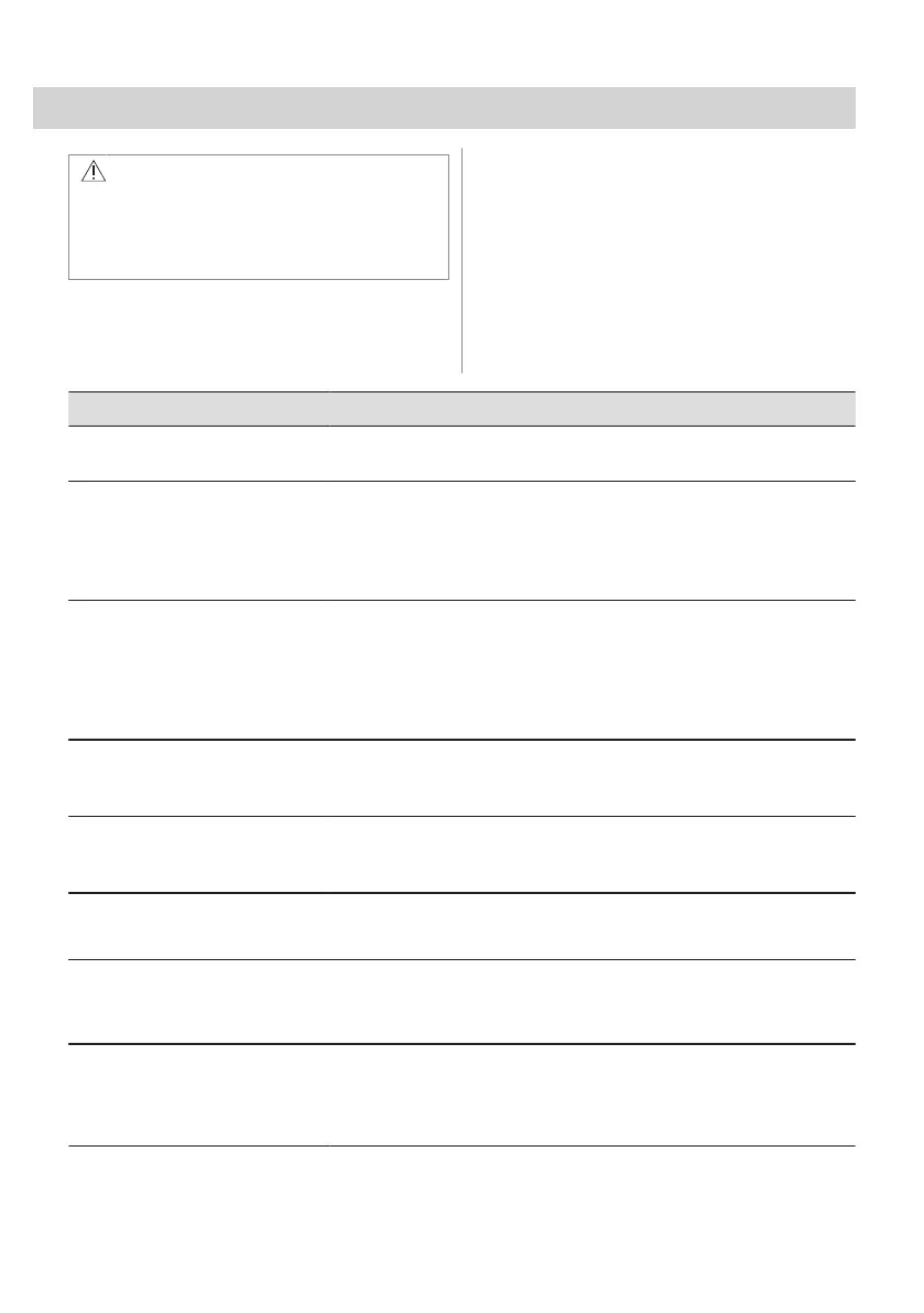 Problem and alarm code Possible cause and solution