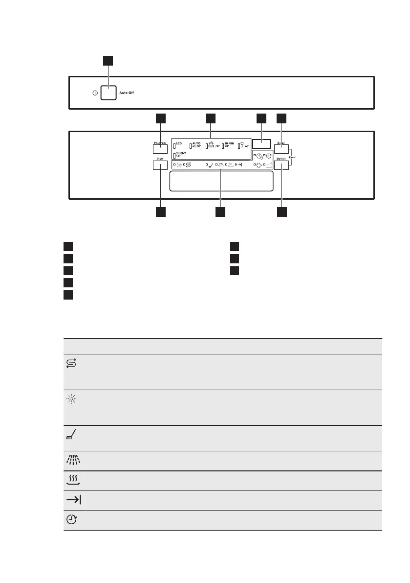 Voyant de phase de rinçage. Il s'allume au cours de la phase de rinçage.
