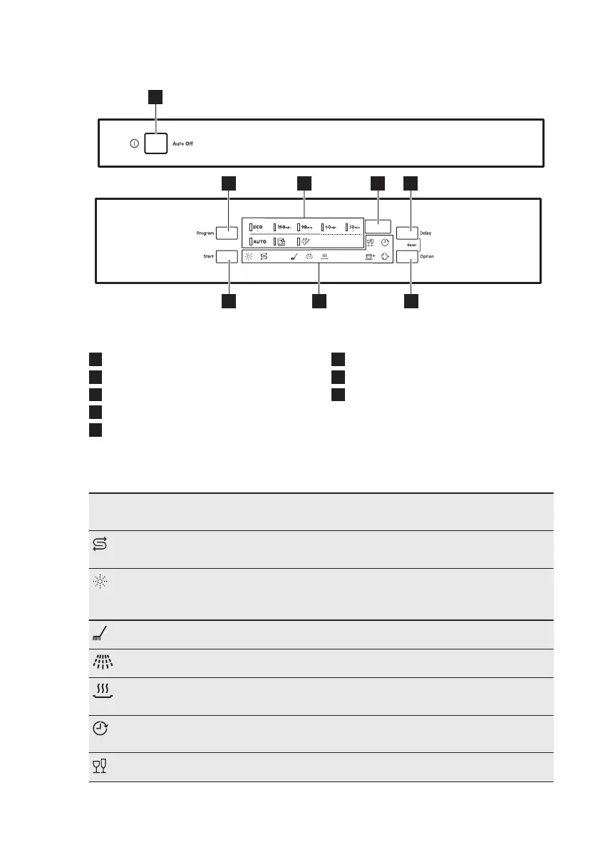 Indicatielampje glansspoelmiddel. Dit is aan als het glansspoelmiddeldo‐