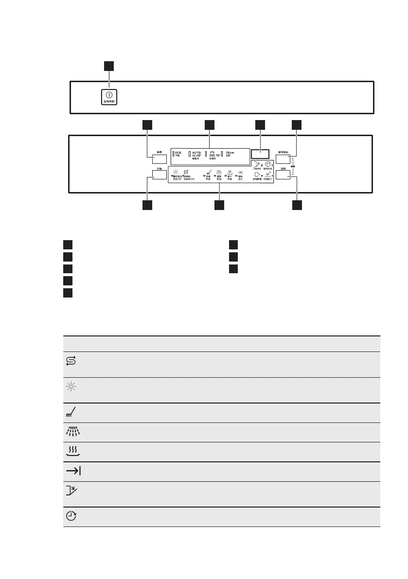 Rinsing phase indicator. It is on when the rinsing phase operates.