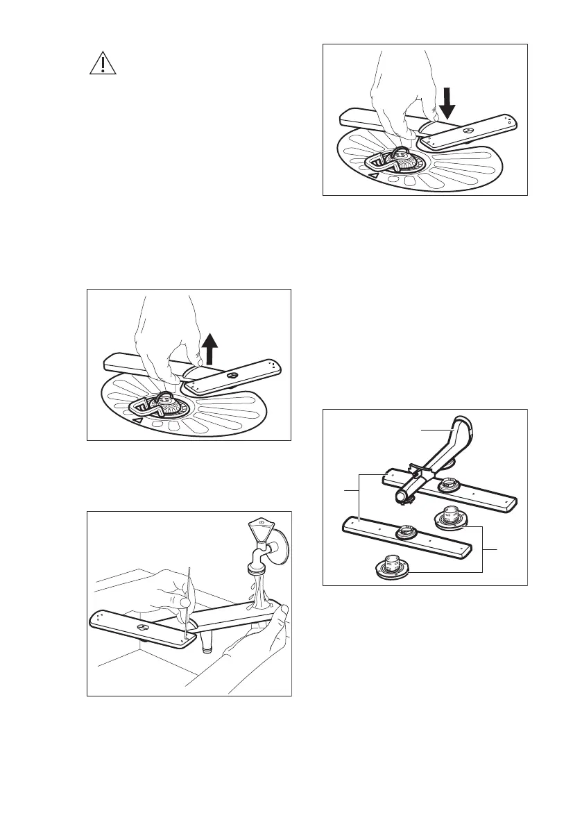 1. Trek de onderste sproeiarm naar