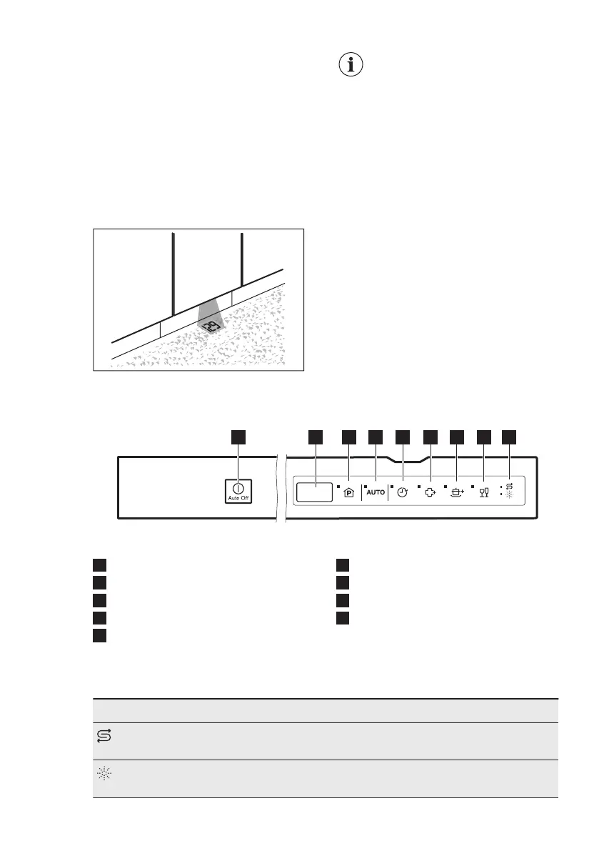 Rinse aid indicator. It is on when the rinse aid dispenser needs refilling. It