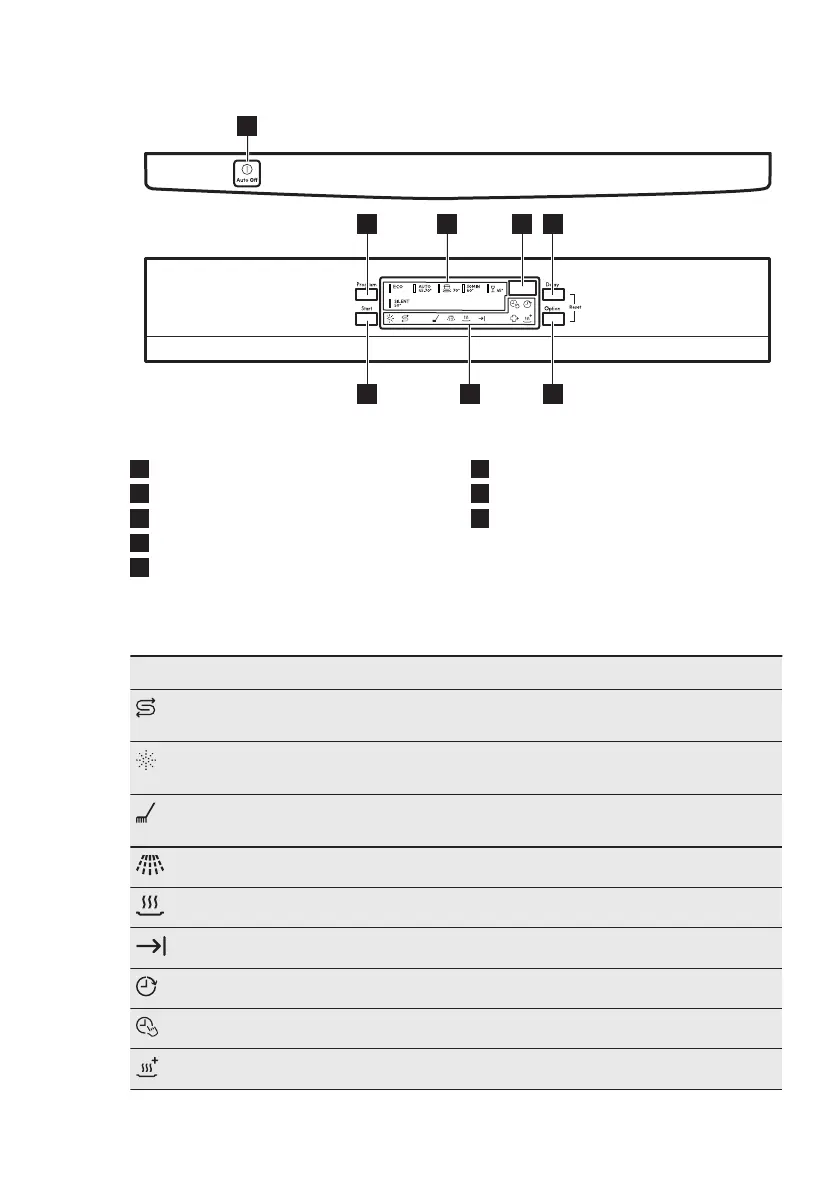 Rinsing phase indicator. It is on when the rinsing phase operates.