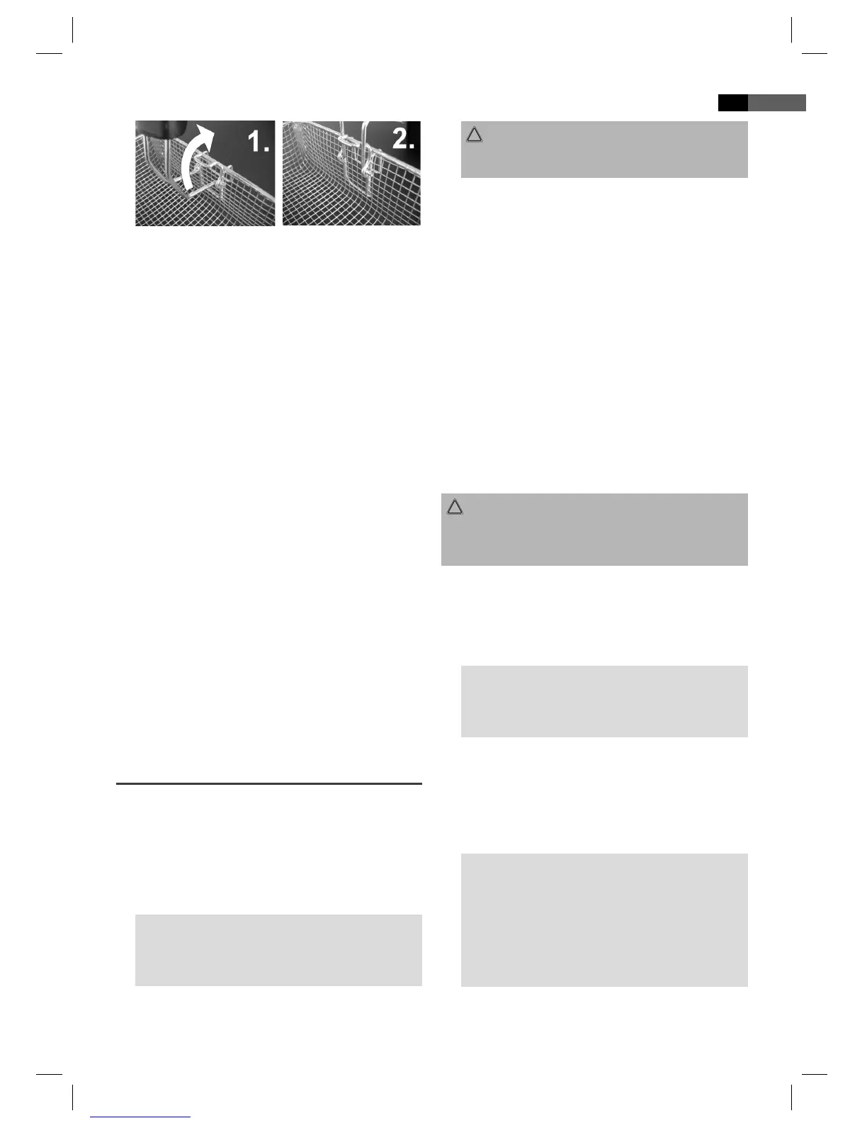 der Korb nicht über dem heißen Fett befüllt wird.