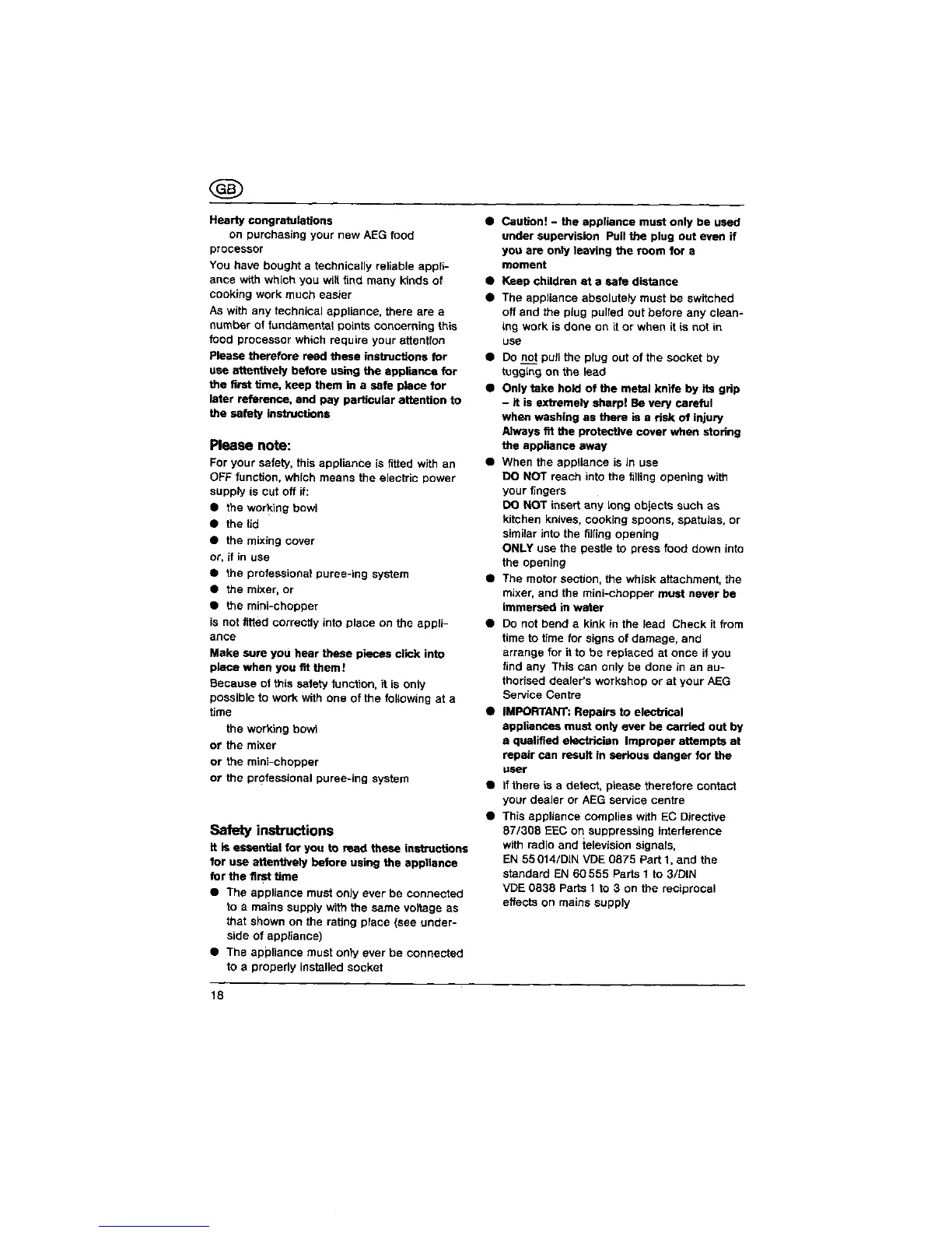 AEG Finesse Pus KM 21 - Safety Instructions