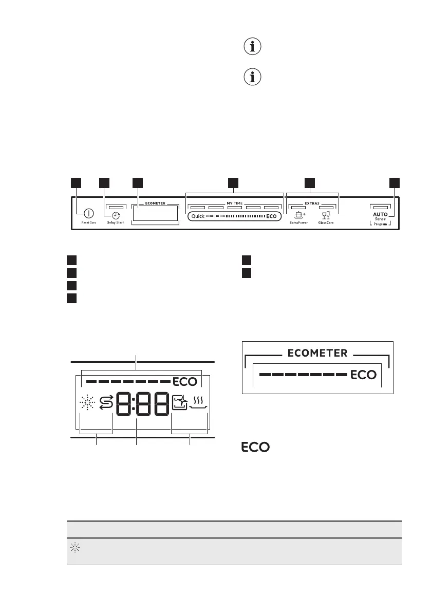 Rinse aid indicator. It is on when the rinse aid dispenser needs refilling.