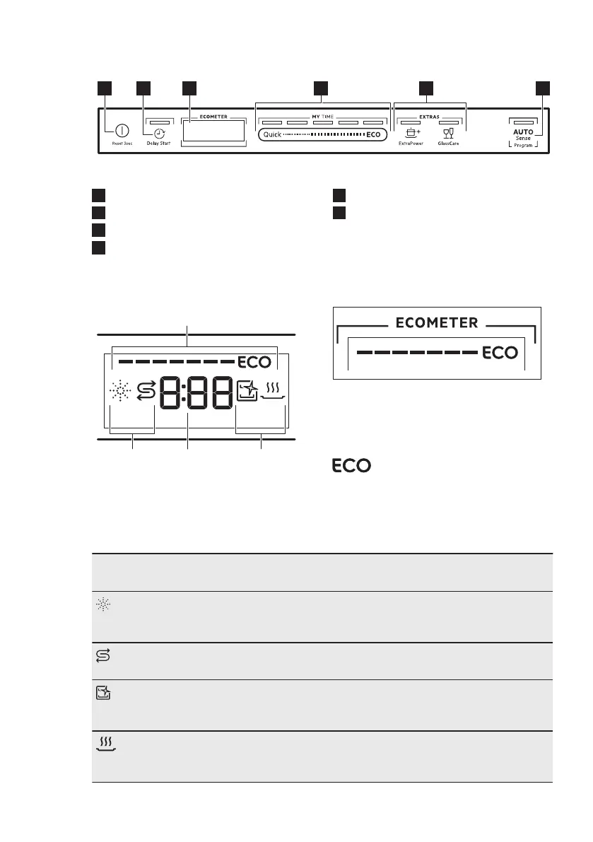 Indicatielampje glansspoelmiddel. Dit is aan als het glansspoelmiddeldo‐