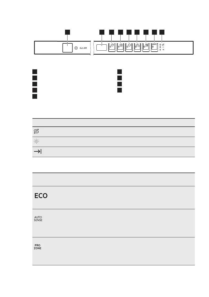 Rinse aid indicator. It is on when the rinse aid dispenser needs refilling.