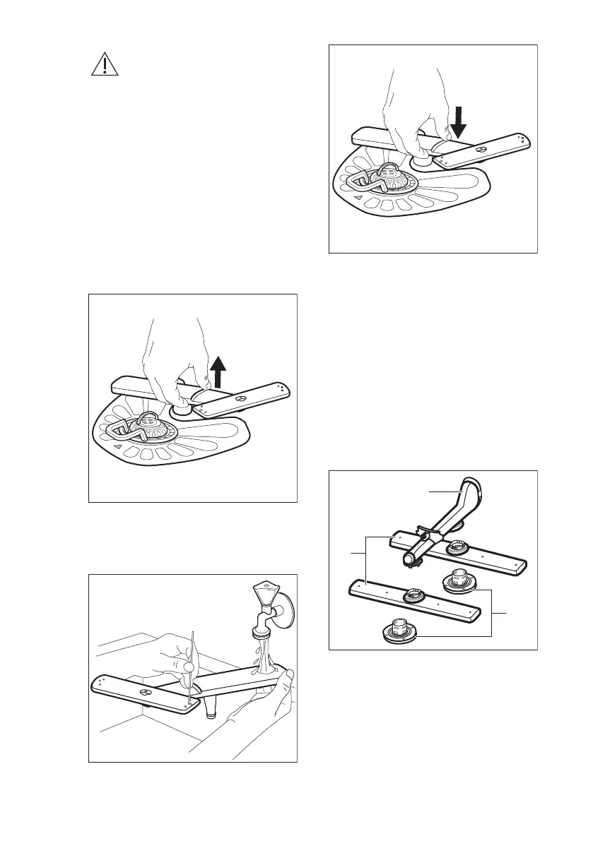 1. Trek de onderste sproeiarm naar