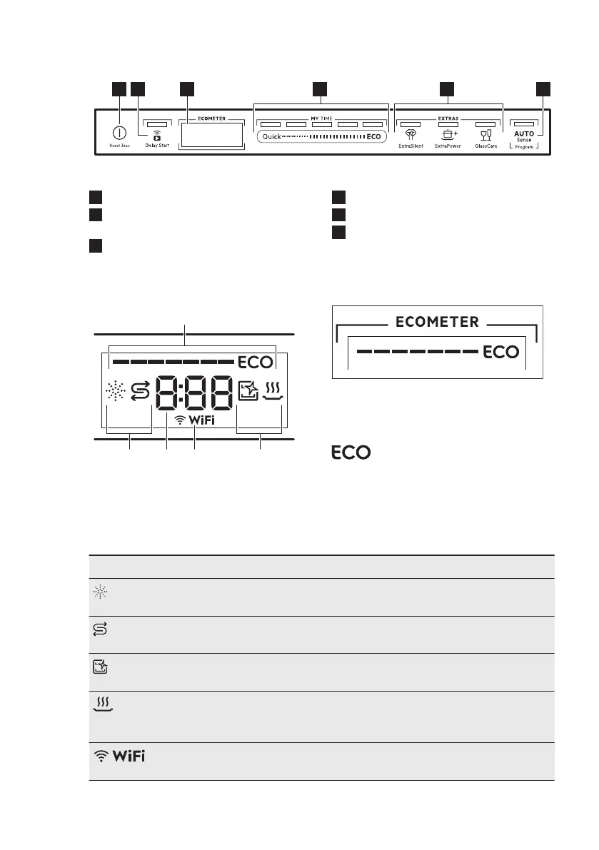 Drying phase indicator. It is on when you select a programme with the dry‐