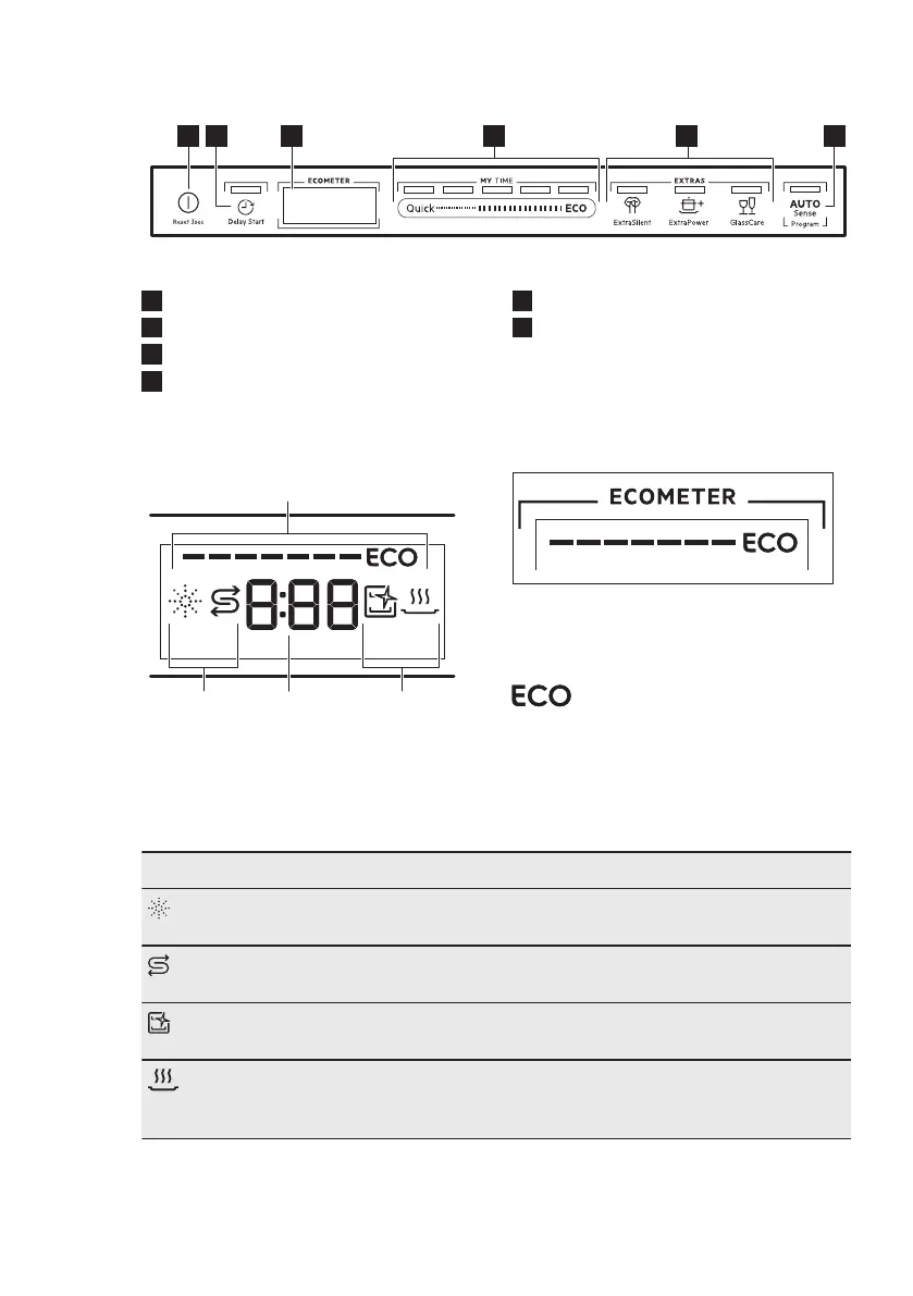 Drying phase indicator. It is on when you select a programme with the dry‐