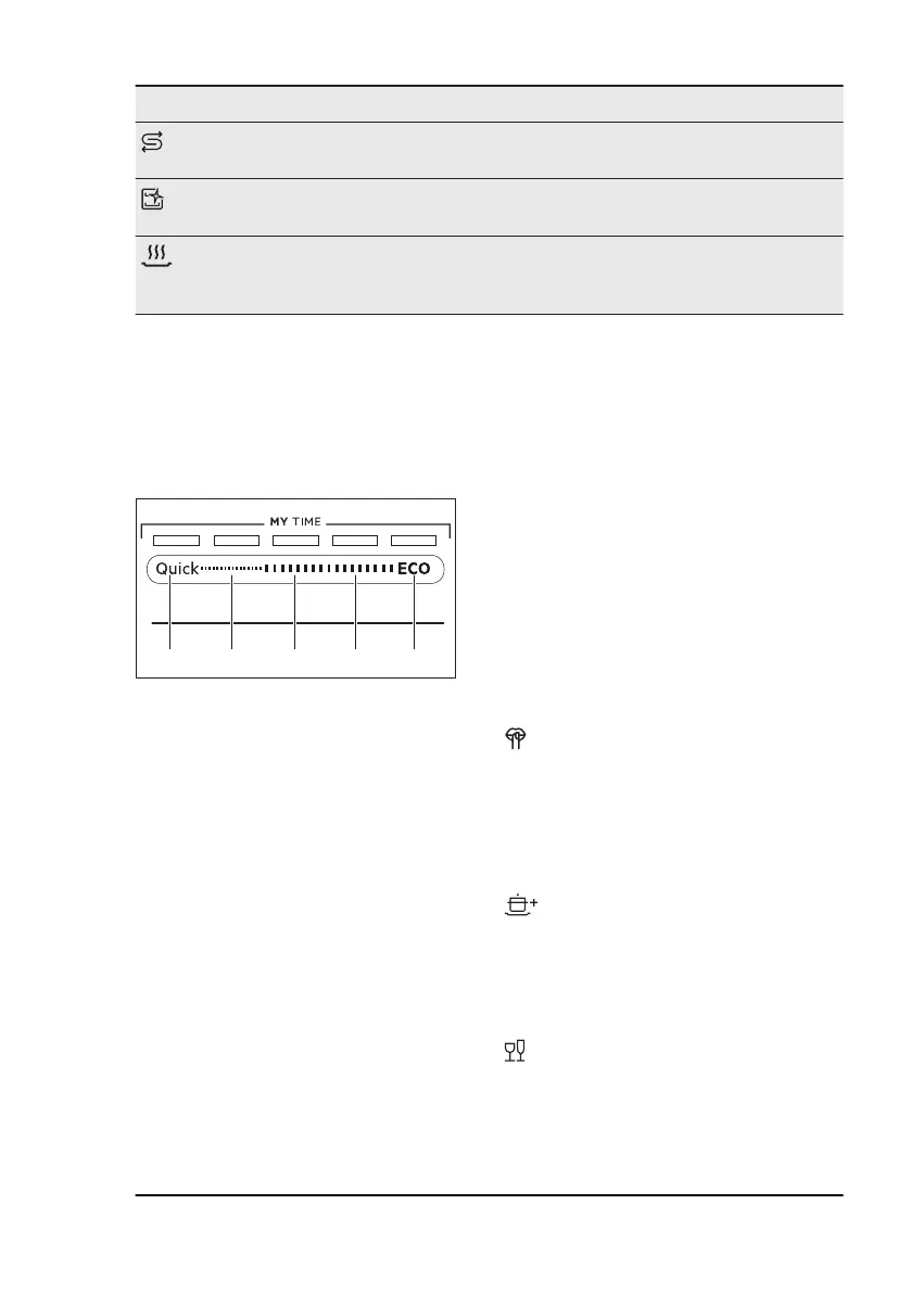 Drying phase indicator. It is on when you select a programme with the dry‐
