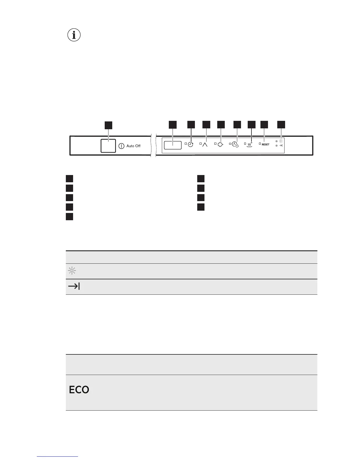Rinse aid indicator. It is on when the rinse aid dispenser needs refilling.