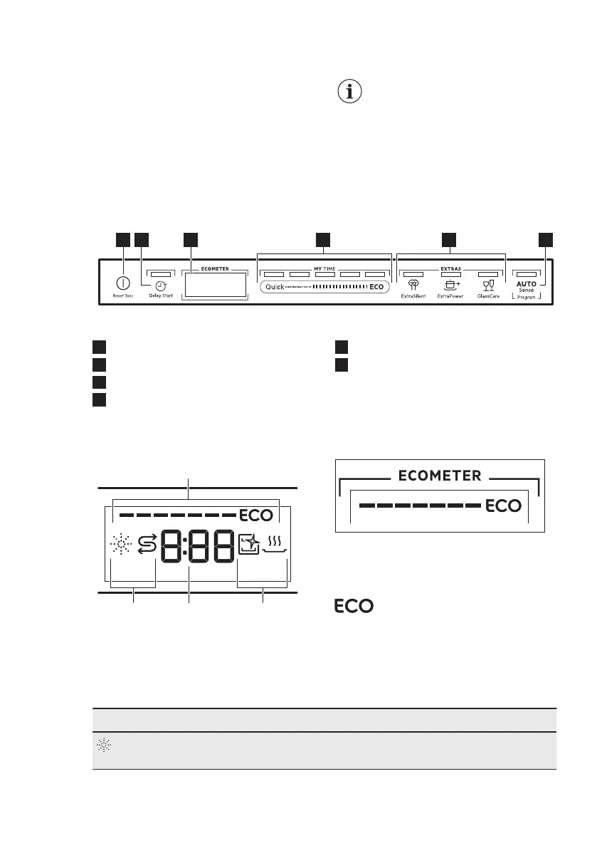 Rinse aid indicator. It is on when the rinse aid dispenser needs refilling.