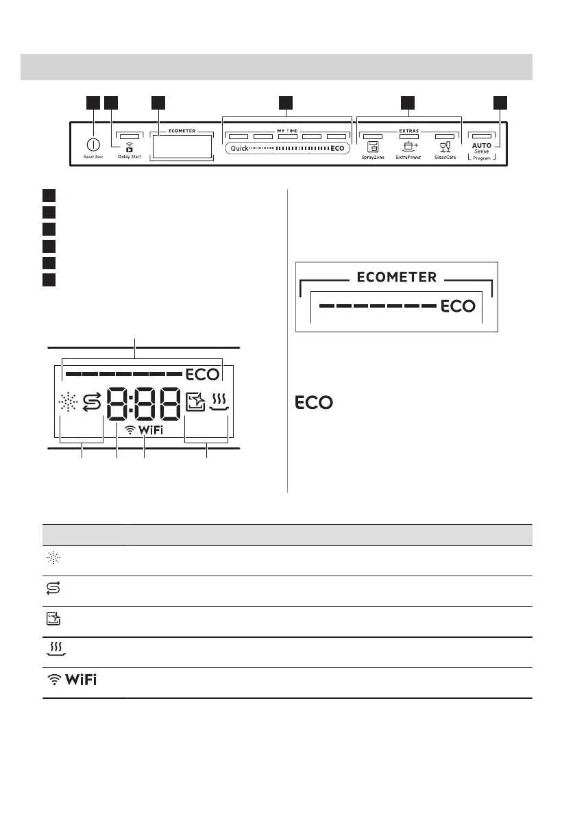 Salt indicator. It is on when the salt container needs refilling. Refer to "Before first use" chap‐