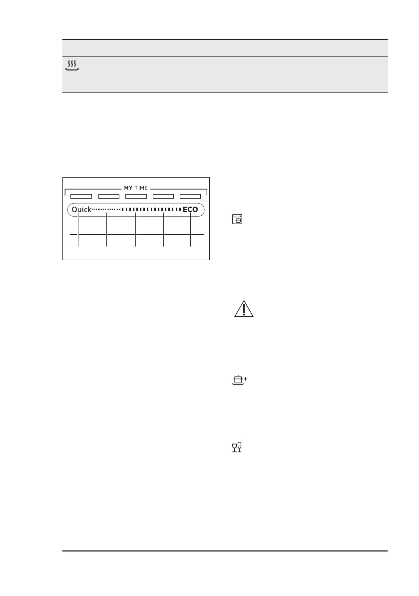 Drying phase indicator. It is on when you select a programme with the dry‐