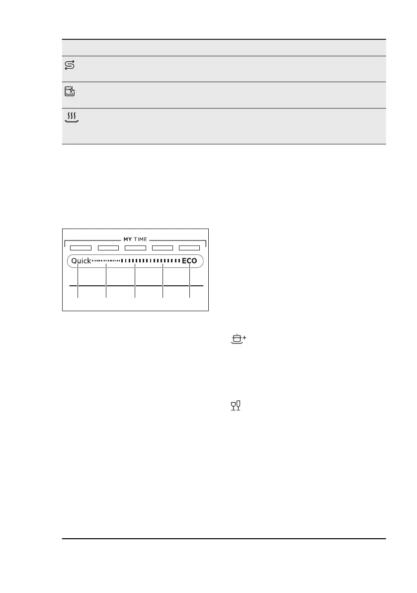Drying phase indicator. It is on when you select a programme with the dry‐