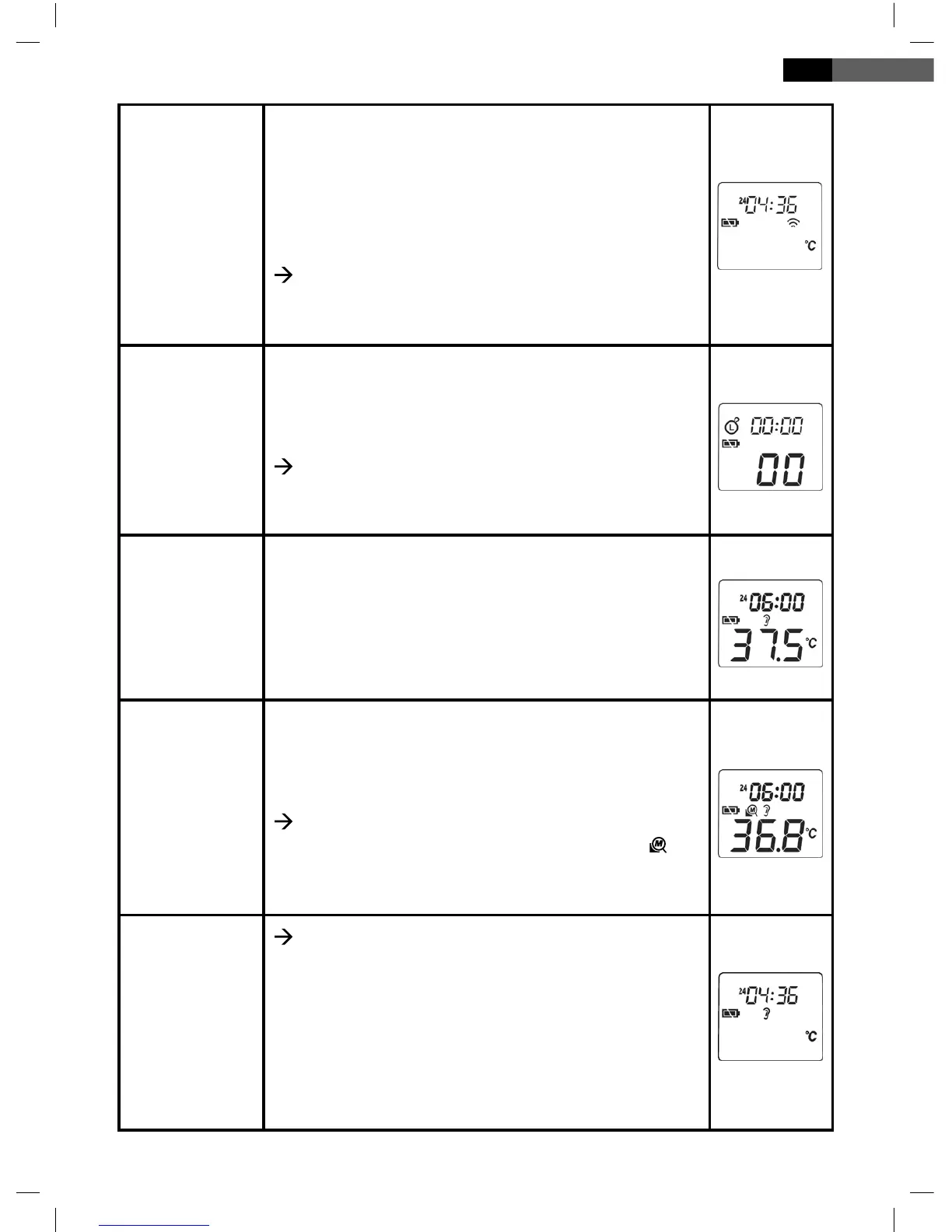 het scherm over van “°C” op “°F”. (Op