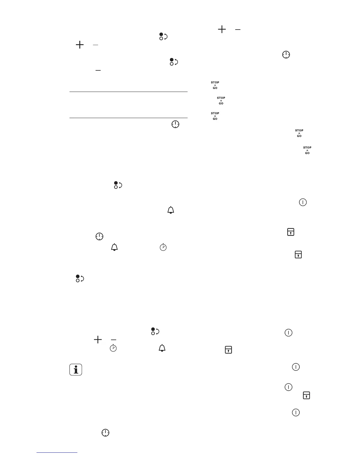 • The selection of the cooking zone (if