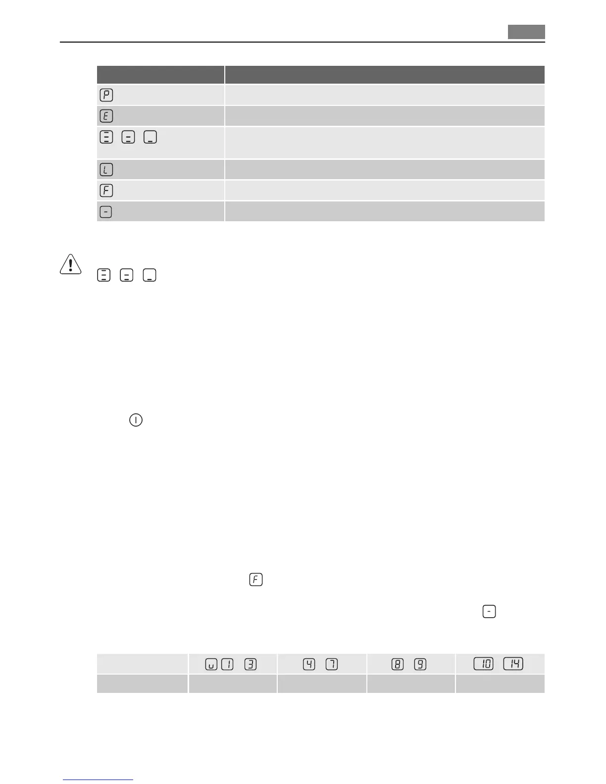 on and the hob stops. See the table.