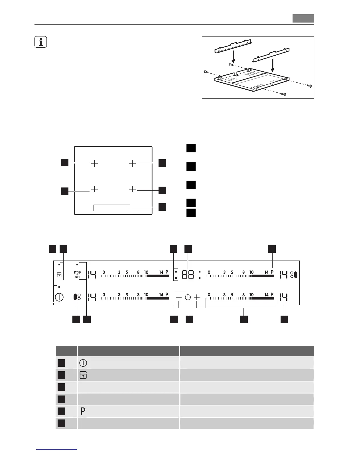 cooking zones' indicators of timer It shows for which cooking zone you set the time.