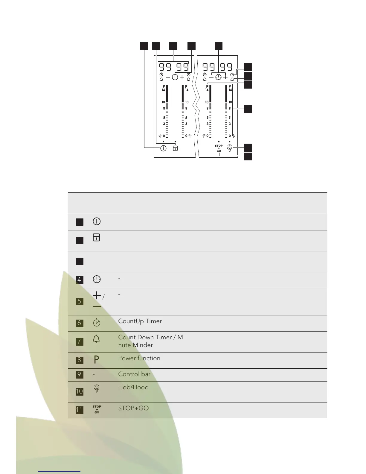 ON / OFF To activate and deactivate the hob.