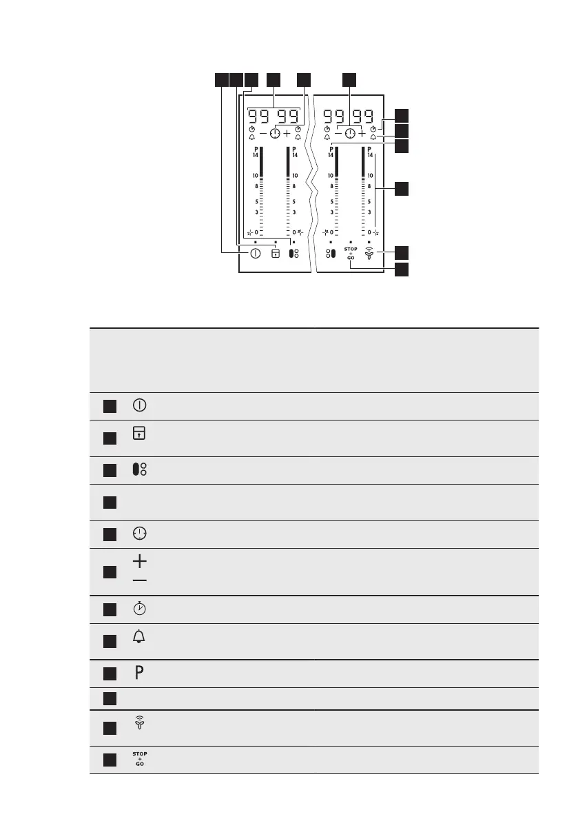 MARCHE/ARRÊT Pour allumer et éteindre la table de cuisson.