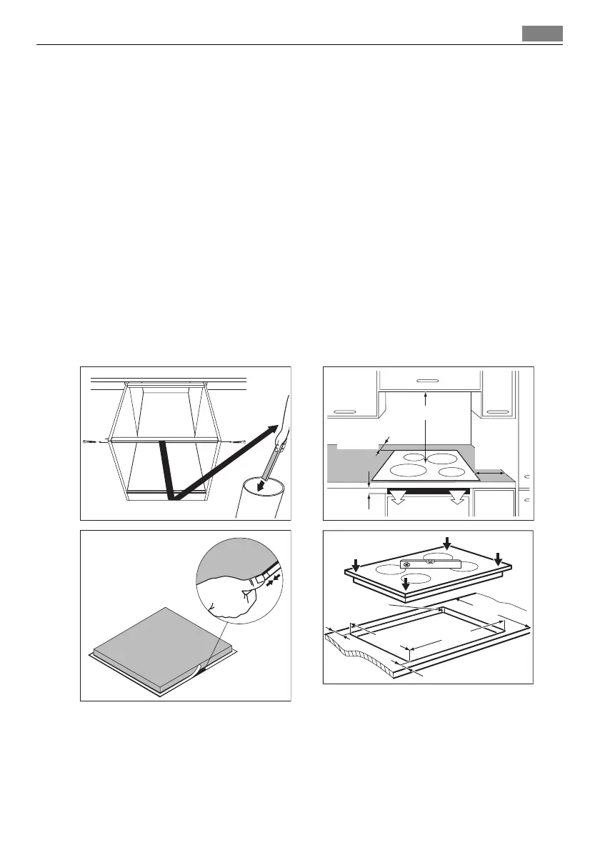 • Plak het afdichtband op de onderste rand van de glaskeramische plaat rondom de bui-