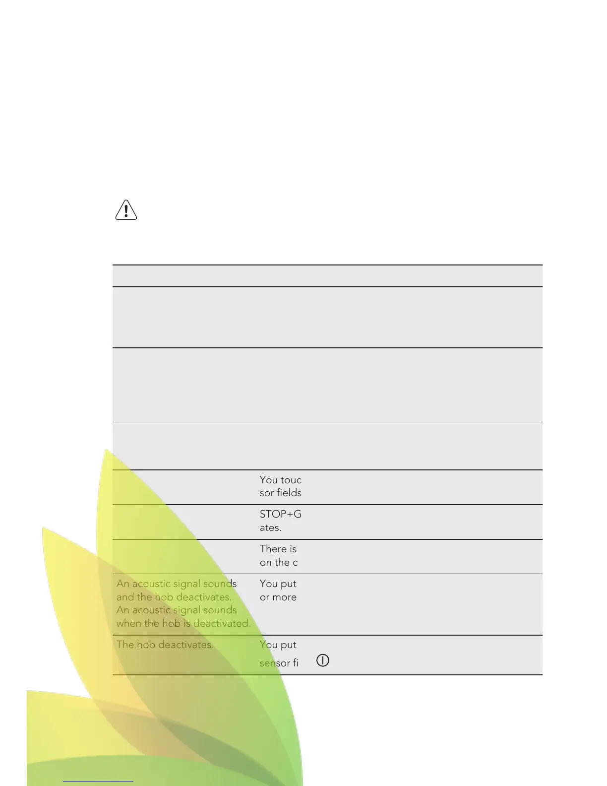 The hob deactivates. You put something on the